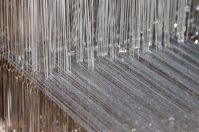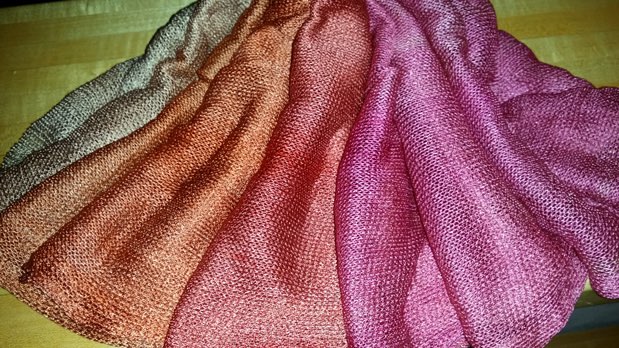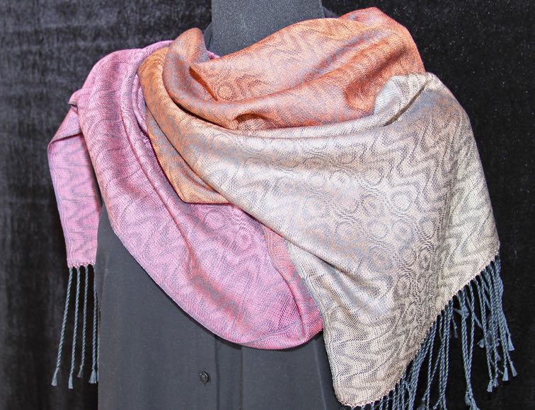 These handwoven scarves are each comprised of almost 1.5 miles of fine silk threads.